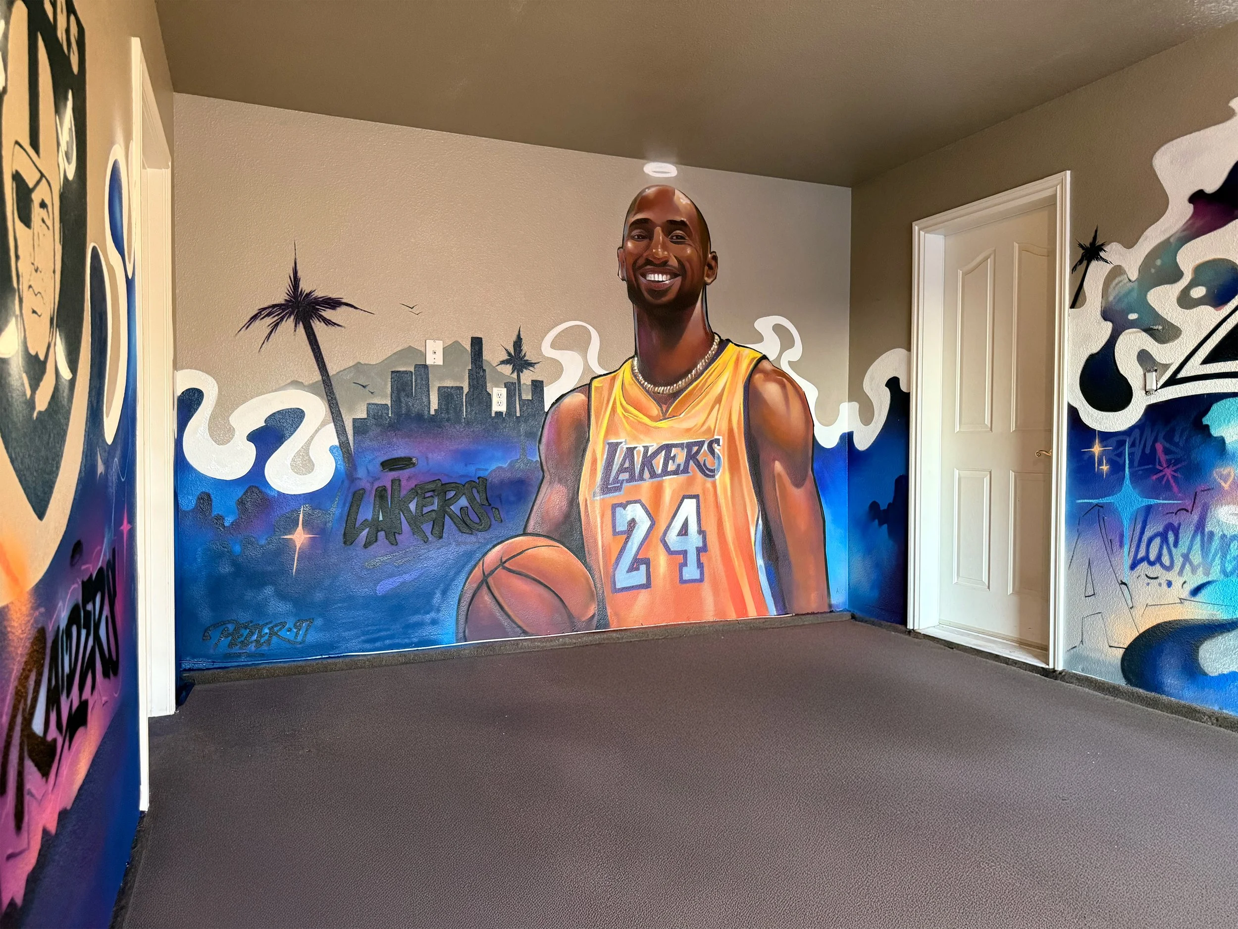 ← → CHAMPIONSLos Angeles - 2025 Sports-themed tribute cave honoring the legendary Kobe Bryant, featuring iconic teams like the Raiders, Los Angeles Rams, and Dodgers. © ALL RIGHTS RESERVED BY THE ARTIST | contact@pezer97.com